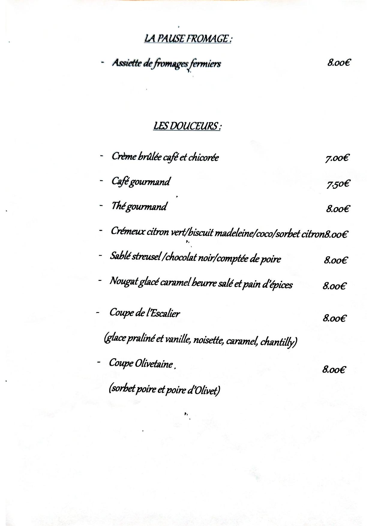 (à choisir sur l’ardoise)